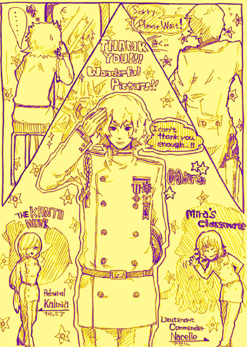 いや…自分の可哀想な脳ミソではちょっとわかりませんが、フリーでしたので(&ミラさんを描かせて頂いたので)ここぞとばかりにゲットしてきましたーーーーーー!!!!!!マッフーーー!!(喜びの雄叫び) 掲載許可もばっちり頂きましたので… 載せたいと…、 思いまっす!! ※画像クリックで原寸 ここからのお持ち帰りや転載はご勘弁を! 欲しい!って方はツテさんにねだりましょう^^(笑) あー、なんと申し上げましょうか?あえて言葉を選ぶとしたら恐悦至極と言うヤツですね。 何度みても背中に目がいくのですがこれは新たなフェチズムの開花ですか??! 背中萌が収まりません、助けて助けて!!!(笑) はぁ、こりゃあ元気になっちゃうよ(キモイよやめてよ) 嬉しいですvホントvv そしてすごいなぁと。何が凄いのかって言うと、こうしてお礼絵を即座に準備出来る事がですよ! しかも抜かりない、この描き込み具合…。愛を感じませんか???(笑) 同じ絵描きとして脱帽ですよ。いやむしろ…脱毛かもしれない。 私も絵を描く速度を速めよう、頑張る!!!! 大事にしますね!ツテさん、ありがとうございます!! あと、残暑見舞いに素敵なおっぱい絵もとい水着絵をイナさんトコからかっぱらってまして(笑) それもよかったら載せたいなぁー…とか企んでるんですがこちらはまだかっぱらい許可しか得てないので掲載許可が下りたら載せます^^ 水着絵とか、いいよね! 私も描きたいんだよね!! でも、もう水着とかシーズンじゃないんだよね!!!orz 君は、どう思うだろうか? あら、ブログをしこしこ打ってる間にリアルタイムで拍手が。 お返事は追記から^^ いい加減に寝なきゃー!