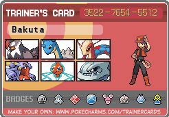トレーナーズカード^^ ▲ パール一軍 ▲ パール二軍 です♪ 二軍は今、育成中! メンバーの詳細をちょっと「紹介」に追記したのでそちらを参照に! トレーナーの画像は、これが一番好きなモンでコレを選びました~。 この人たちなんだっけ、ポケモンレンジャー?(絶対違うよ) そうそう、イワークのしずかをですね、ハガネールにしたんですよーーー! やっとですよー、超嬉しい…(笑) 男好き♀ハガネール。通称バケモノです(笑) 二軍はビジュアル的に強そうだなぁ。いや、弱いですよ^^; バクオングなんて、性格が大人しくて几帳面ですから!!!!! おまえさん、爆音なんじゃないの???!(笑) あー、カテゴリーにポケモンとリヴリーを作るべきかなぁ?? ぬぬん。 まだ一軍メンバー全員もUP出来てないのに、ミロカロスとラプラスに浮気中です。 近日紹介UP…予定(笑)あ・あくまで予定でございます_| ̄|○ よし、やっぱポケ・リヴカテゴリーにわけよーーーっと。 今日は友達と考えた制服を仕上げるはずだったのに(あと修業絵)眠すぎて描けない!